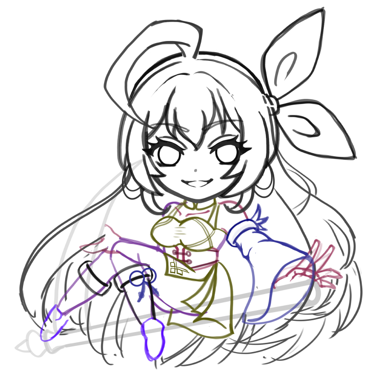 あとは頭のバランスと目を少し修正して体の装飾を足しているところです。なかなかイラストを描く時間が取れず、土日では終わらなそうな気配…。