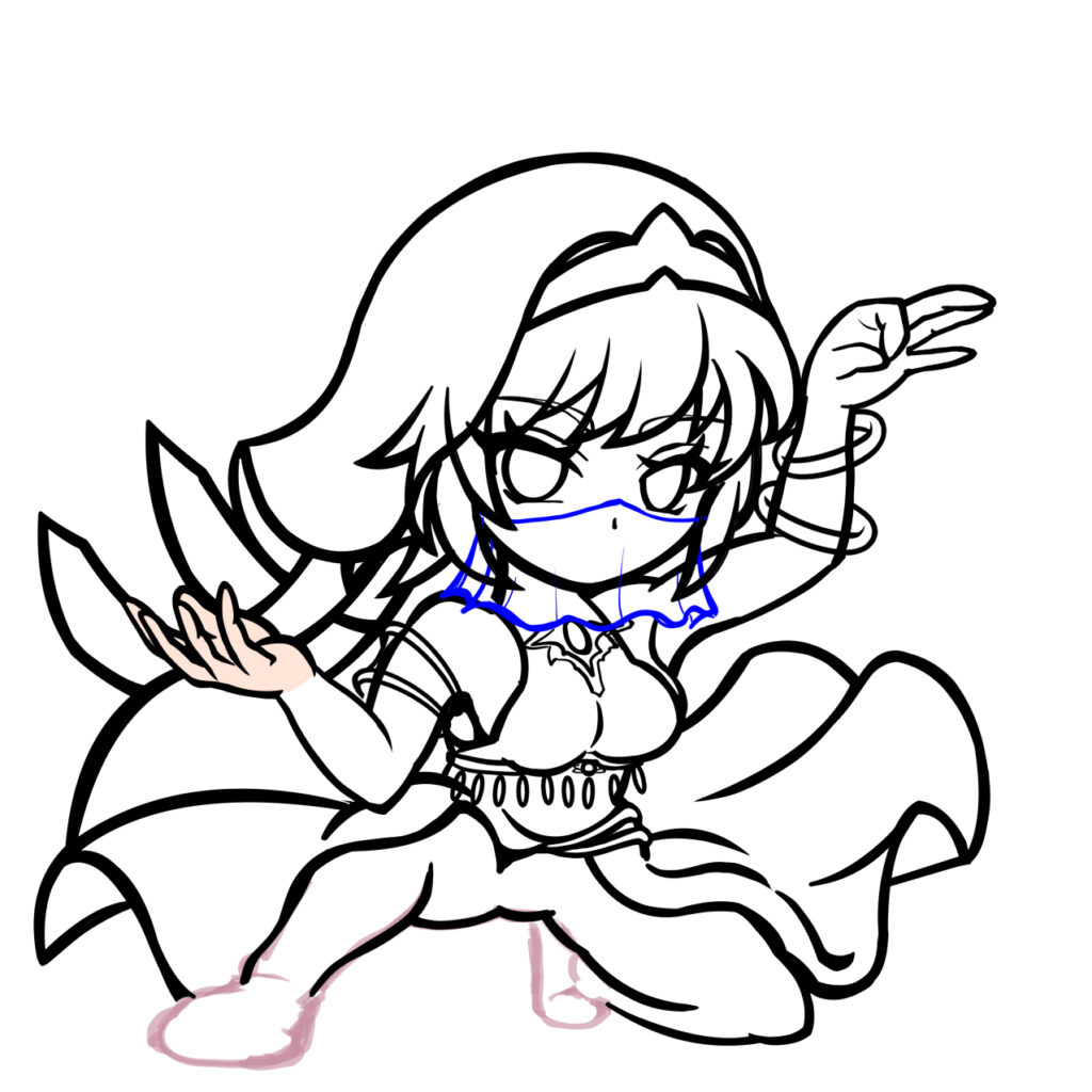 右手からロケットパンチでも飛びそうですがあるものをギュっとしているような感じをイメージしてます。ただそれも描き進めていくうちにうまく表現できなかったらガラッと変わると思います。