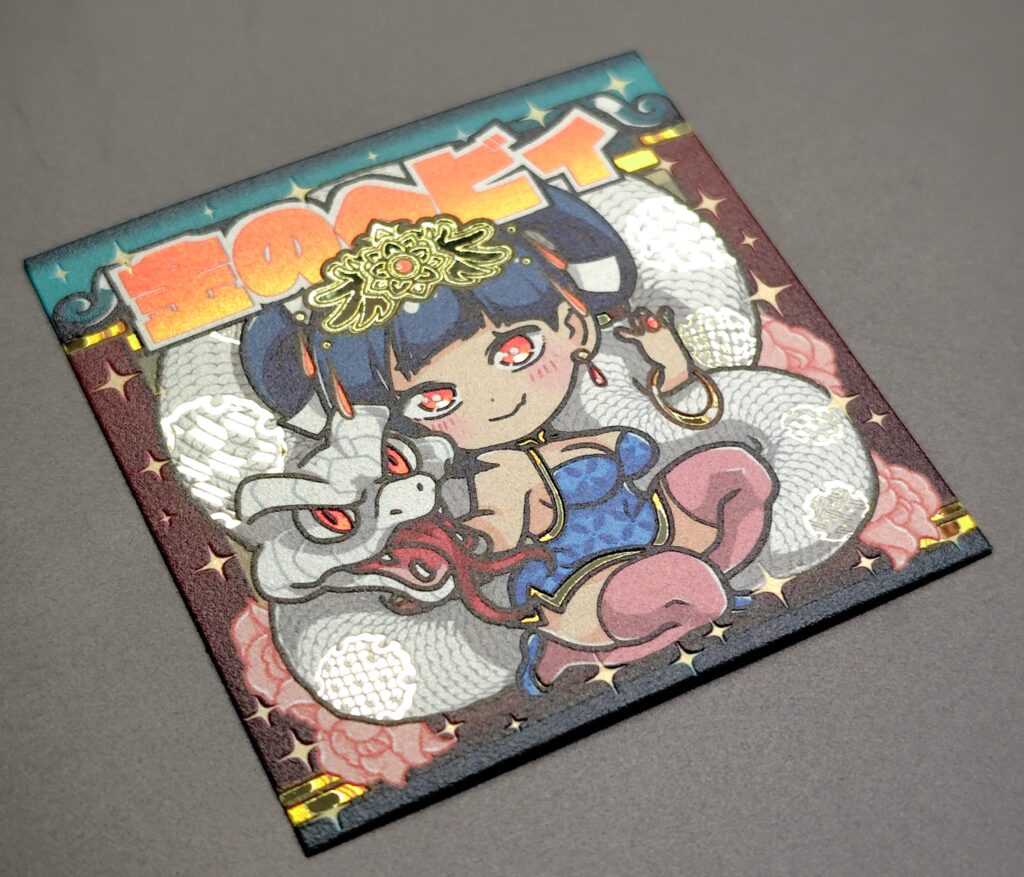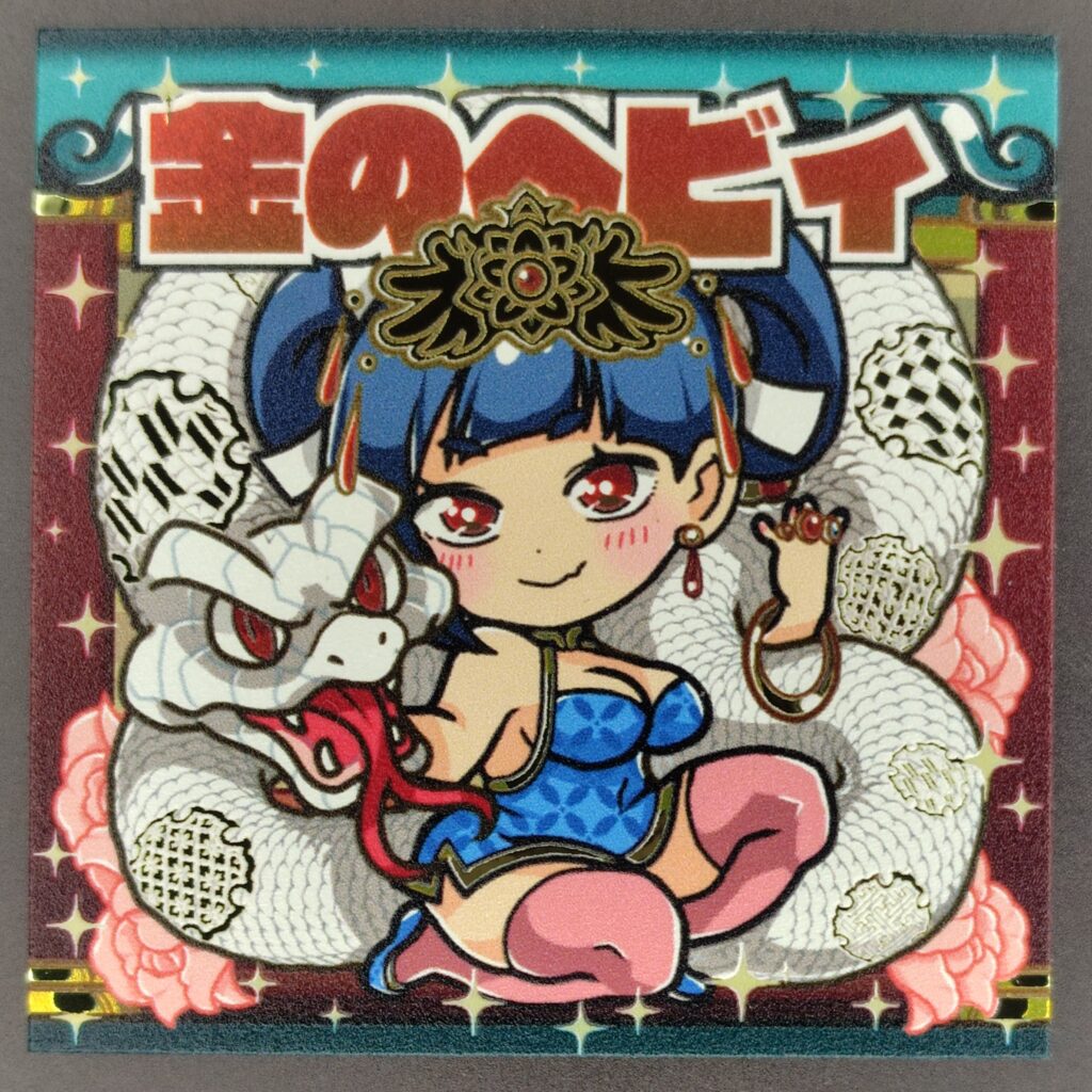こちらは蛇の存在感が強烈なシールです。