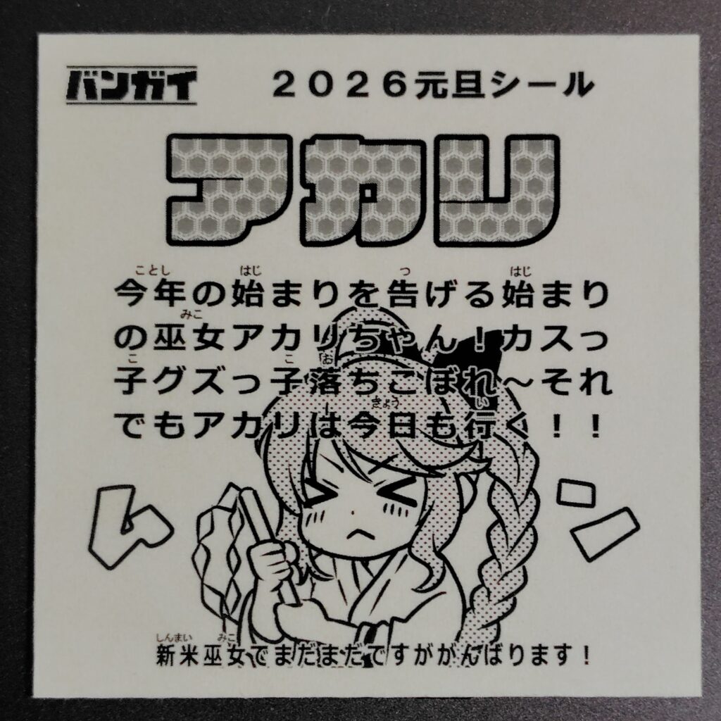 2026年元旦シール:アカリ